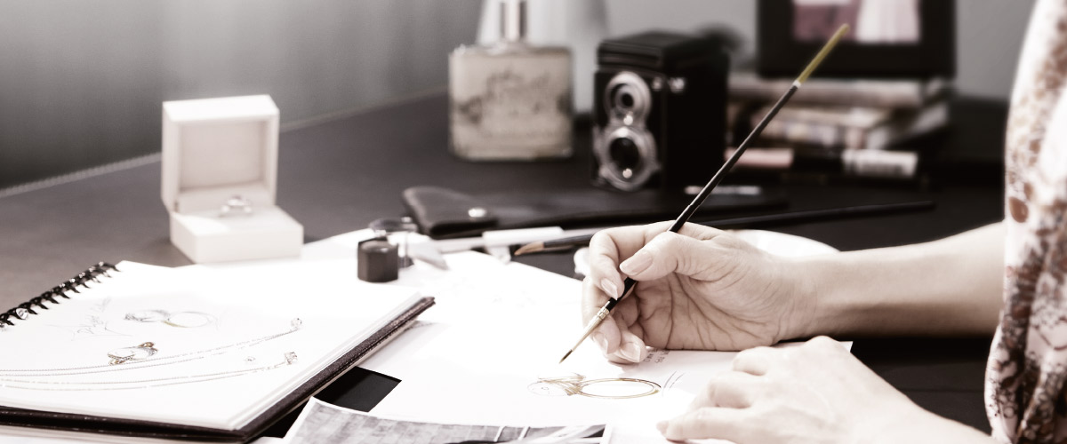 从最初的设计构思到最后一道宝石镶嵌工艺,每一枚戒指均以艺术为重心。为此,我们以纯手工镶嵌和打磨每一枚戒指,并始终采用我们自行设计的草图。